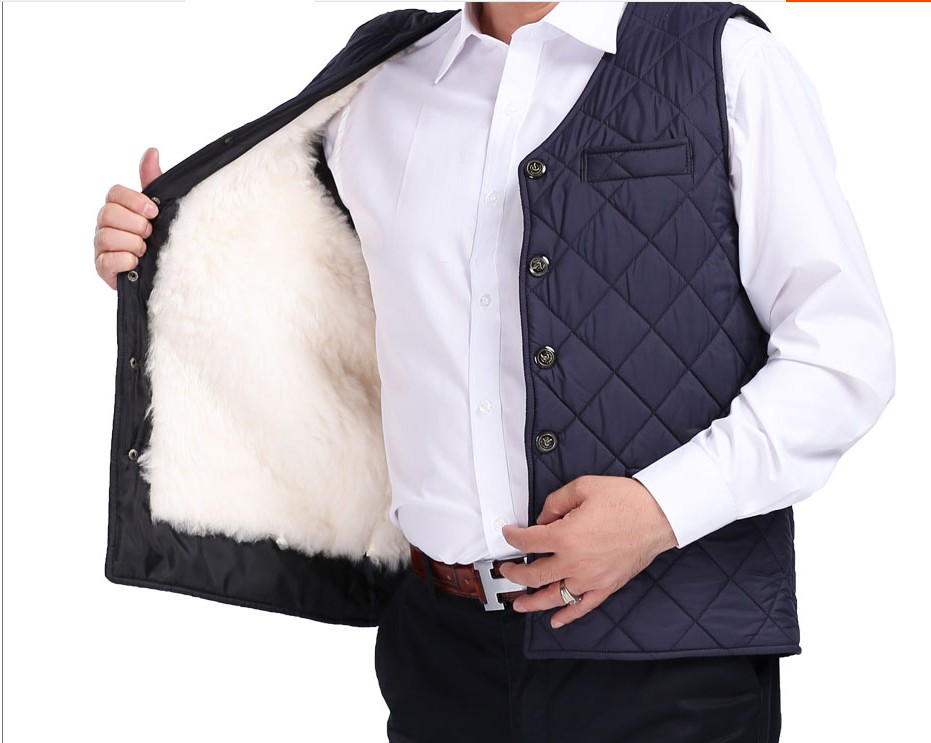 Mùa thu và mùa đông cha mặc áo lông một bộ đồ cotton giữa và da cừu già nam da vest da vest vai len bộ vest nam cho người trung tuổi Áo vest cotton