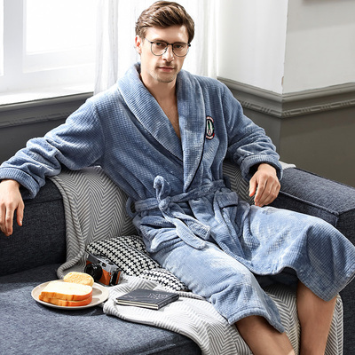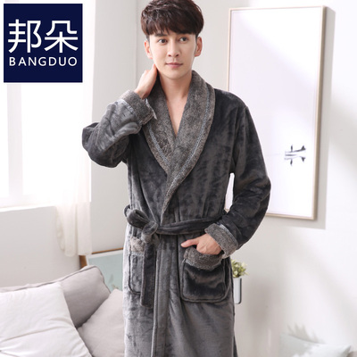 Mùa thu và mùa đông đồ ngủ nam áo choàng tắm san hô lông cừu ấm dày một mảnh mùa đông nam flannel cộng với áo ngủ nam béo đồ ngủ pijama
