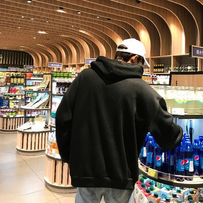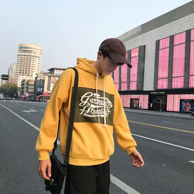 Mùa thu và mùa đông nam cộng với nhung siêu lửa in áo len trùm đầu nam thanh niên lỏng lẻo mùa thu cổng gió - Áo len hoodie tím