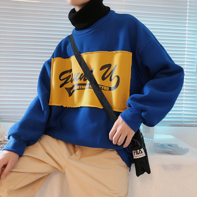 Mùa thu và mùa đông nam cộng với nhung siêu lửa in áo len trùm đầu nam thanh niên lỏng lẻo mùa thu cổng gió - Áo len hoodie tím Áo len