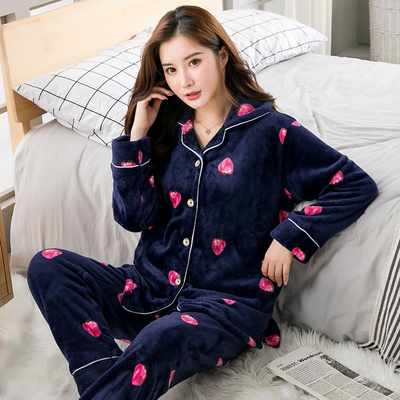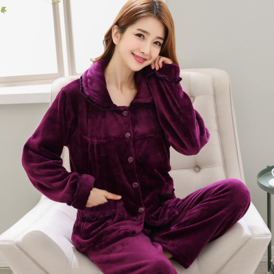 Mùa thu và mùa đông phụ nữ flannel đồ ngủ mẹ trung niên tải dài tay dịch vụ nhà dễ thương học sinh phù hợp với lông cừu san hô áo ngủ nữ