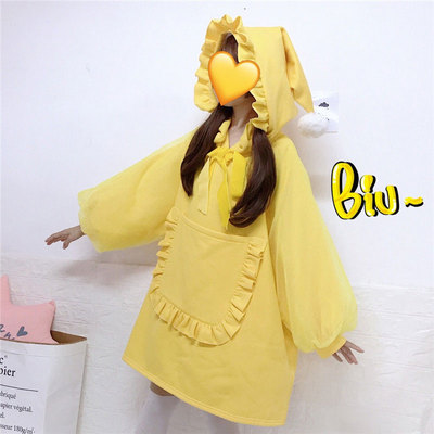 Mùa thu và mùa đông phụ nữ Nhật Bản mềm mại dễ thương tóc bóng ma thuật mũ rộng vành túi lớn cộng với áo len nhung dễ thương váy cho người béo váy đầm