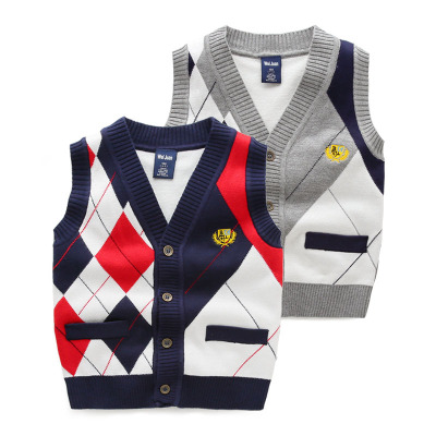 Mùa xuân 2018 mới và áo len dệt kim mỏng phần vest bé trai hai lớp áo len trẻ em lớn vest vest áo kiểu cho be gái