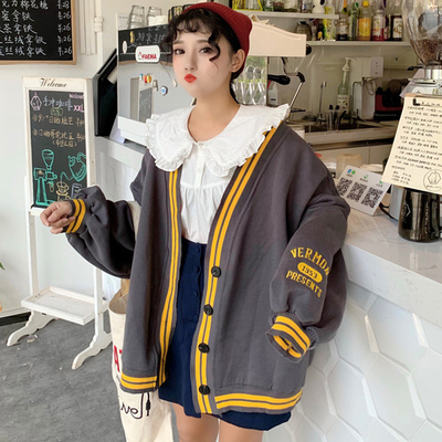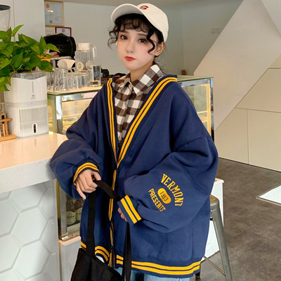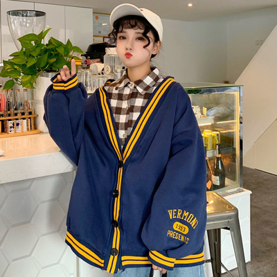 Mùa xuân và mùa thu Harajuku Phiên bản Hàn Quốc của ulzzang lỏng dày chủ đề V-cổ thêu áo len áo len quần áo đẹp nữ