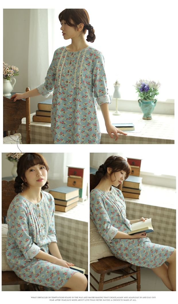Mùa xuân và mùa thu mới cotton nữ áo dài tay cotton nhung ngọt ngào nhỏ tươi đồ ngủ hoa giản dị dịch vụ nhà áo ngủ 2 dây Đêm đầm