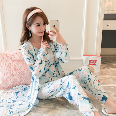 Mùa xuân và mùa thu mùa đông Đồ ngủ dài tay nữ Cotton Bộ đồ Hàn Quốc tươi mới Bộ quần mùa hè Dịch vụ tại nhà Bộ ba mảnh pijama nữ