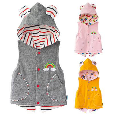 Mùa xuân và mùa thu nam mỏng nữ áo vest bé vest đôi cotton trùm đầu vest bé ra quần áo để giữ ấm váy trẻ em