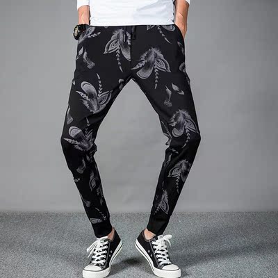 Mùa xuân và mùa thu nam Quần âu Chín Quần thời trang Cá tính In Quần Quần Slim Tide Quần nam Quần Harlan Quần dài - Quần mỏng quần ngố nam
