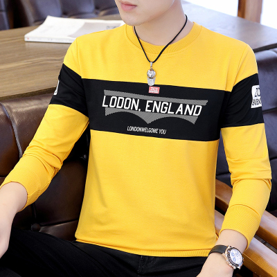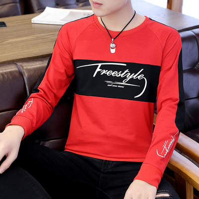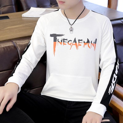 Mùa xuân và mùa thu nam Vòng cổ áo khoác mùa thu Hàn Quốc dài tay áo len sinh viên Xu hướng cá tính Áo sơ mi nam in - Áo len hoodie tím