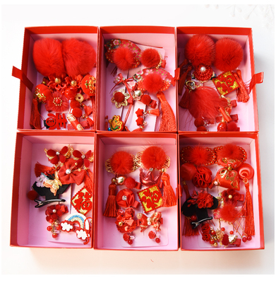 Năm mới Trung Quốc phong cách trẻ em phụ kiện tóc bé mũ cô gái tóc bóng hoa tua rua kẹp tóc Gege đầu hoa thẻ phụ kiện tóc hàn quốc Phụ kiện tóc