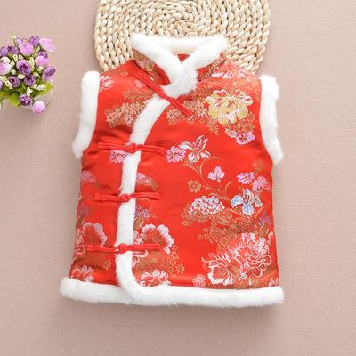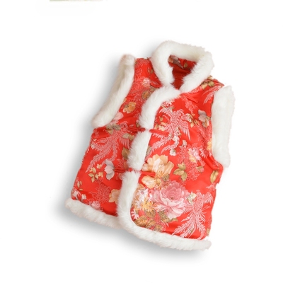 Nam và nữ trẻ em Năm mới Tang vest vest bé đỏ vest show váy bé giả thỏ lông cổ áo vest cha-con áo len ba lỗ cho bé Áo ghi lê