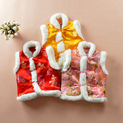Nam và nữ trẻ em Năm mới Tang vest vest bé đỏ vest show váy bé giả thỏ lông cổ áo vest cha-con áo len ba lỗ cho bé