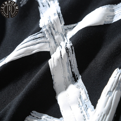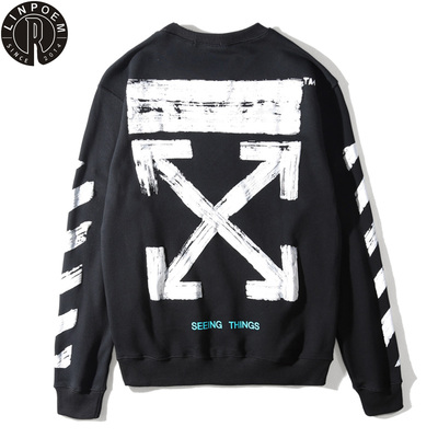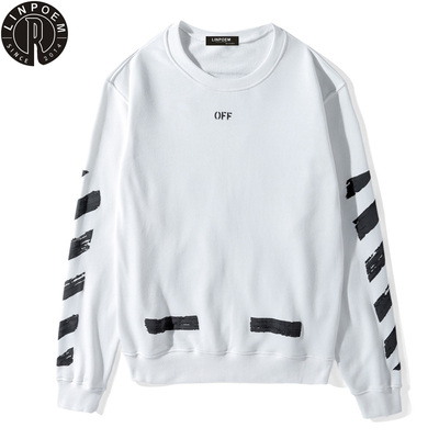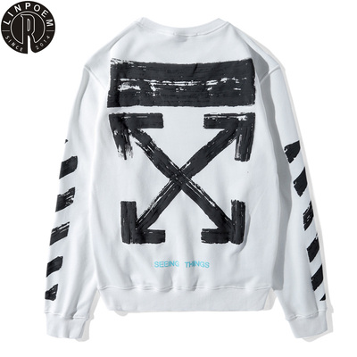 Nhãn hiệu thủy triều Linpoem TẮT vẽ tay bằng mực graffiti mũi tên TRẮNG cổ tròn áo thun nam và nữ áo len dài tay - Áo khoác đôi quần kaki nam Áo khoác đôi