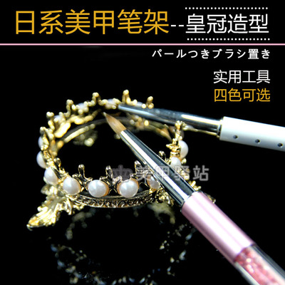 Nhật Bản và Hàn Quốc Dụng cụ làm móng Nail Cửa hàng Nail Dễ thương Người giữ Bút Vintage Kim loại Ngọc trai Crown Chủ Bút bộ làm nail
