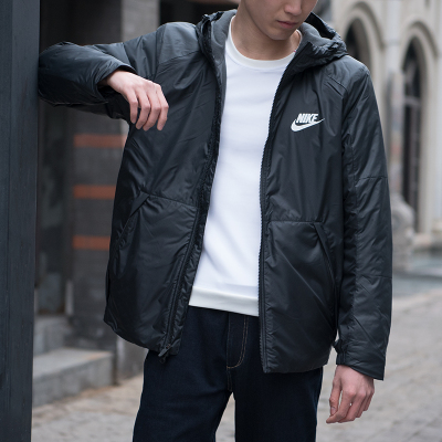 Nike cotton nam 2018 mùa đông trùm đầu thể thao ngoài trời gió cộng với nhung dày quần áo cotton ấm 861789-010 áo phao adidas nam Quần áo độn bông thể thao