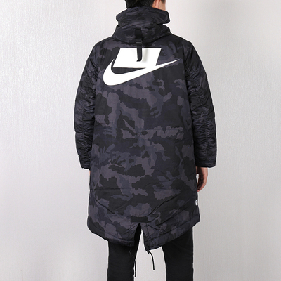 Nike Nike cotton nam 2019 áo khoác thể thao mới dài trùm đầu cotton ấm áp AA8860 - Quần áo độn bông thể thao áo phao cổ lông Quần áo độn bông thể thao