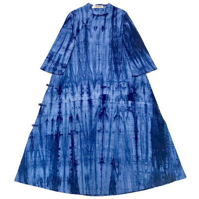 Nữ trình diễn màu đỏ 2017 mùa thu retro phong cách Trung Quốc vải lanh nhuộm cotton và váy lanh váy dài váy cỡ lớn quần áo văn học nữ - Váy dài đầm tầng dài
