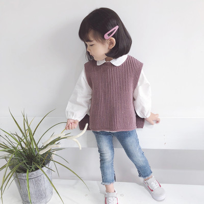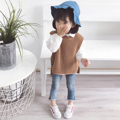 Nước cam nhà trẻ em áo len vest phiên bản nước ngoài Hàn Quốc mùa thu 2018 mới cho bé gái áo len dòng áo len thủy triều áo khoác cho bé Áo ghi lê