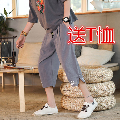 Phật nam quần mùa xuân phong cách Trung Quốc cotton và vải lanh quần thêu nam lanh lanh nam lanh vải thường quần vải chân - Quần mỏng quần thể thao Quần mỏng