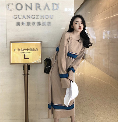 Phiên bản G lỏng tay dài lười mùa thu mới sang trọng đan váy mùa thu đầu mùa nhẹ nhàng gió áo len váy nữ váy đầm