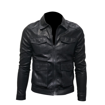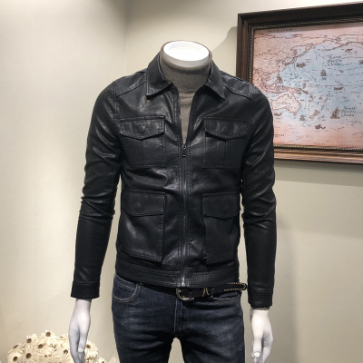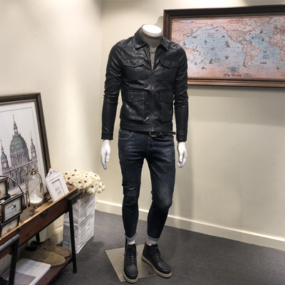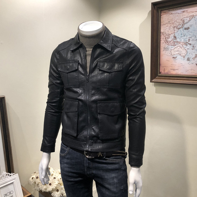 Phiên bản Hàn Quốc của áo khoác da nam xu hướng mỏng 2018 áo khoác da nam đa túi mới - Áo khoác đôi áo thể thao