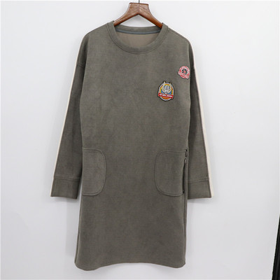 Phiên bản Hàn Quốc của mùa thu 2018 mới hoạt hình vá váy nữ lỏng lẻo dài tay giả da lộn váy ngắn thủy triều váy cưới váy đầm