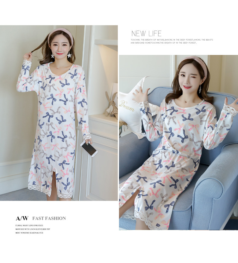 Phiên bản Hàn Quốc của váy ngủ dài tay nữ mùa thu cotton dễ thương cho học sinh mặc đồ ngủ liền quần rộng cỡ hai mặc dịch vụ mặc nhà váy mặc nhà dễ thương Đêm đầm