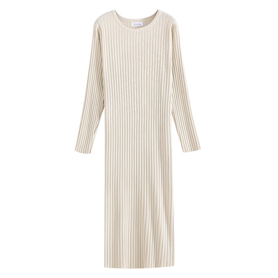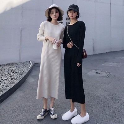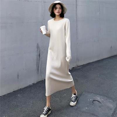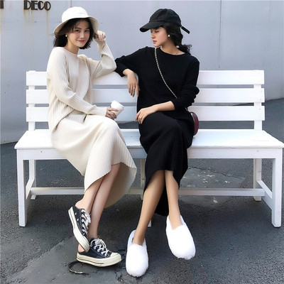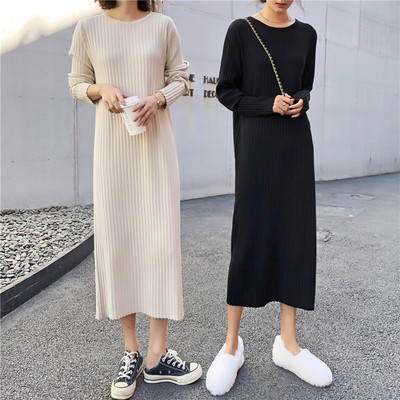 Phiên bản Hàn Quốc của váy platy mỏng retro Pháp áo len dài tay áo dài chạm đáy đan váy nữ mùa thu đông đầm thiết kế
