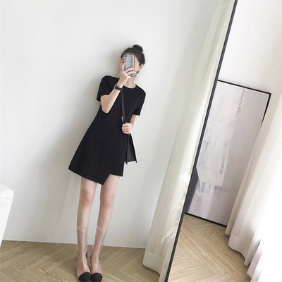 Phong cách Hồng Kông nữ 2019 hè bên bờ biển ngày lễ retro mỏng màu đen ngọt ngào eo cao đầm không đều - váy đầm đầm đi đám cưới váy đầm