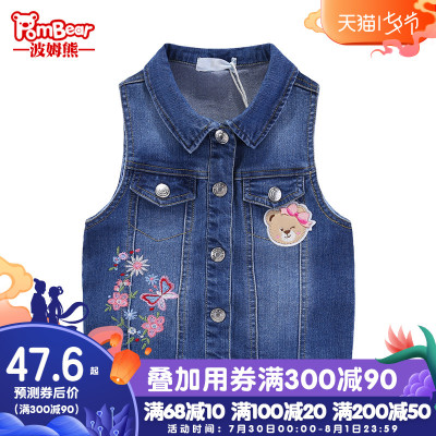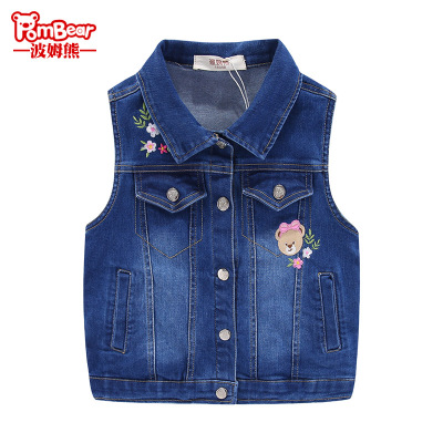Pom gấu 2019 xuân mới cho bé gái vest retro thêu vest denim cho bé nhỏ vest bé không tay - Áo ghi lê sỉ quần áo trẻ em
