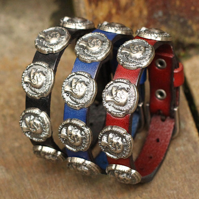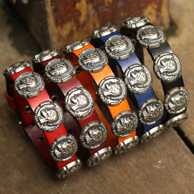 Punk đầu lớp da vòng tay đường phố vòng đầu kim loại vòng đeo tay nam vòng đeo tay da dày vòng tay titan