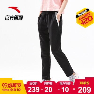 Quần Anta nữ 2019 mùa thu mới đan mỏng thể thao thẳng quần đen bình thường 16937756K - Quần thể thao quần thể thao 3 sọc