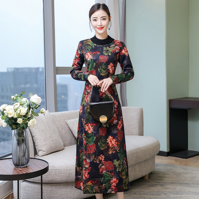 Quần áo nữ mùa thu phong cách size lớn thoải mái cộng với nhung dày mỏng mùa thu đáy váy 2018 mới váy nhung đẹp váy đầm