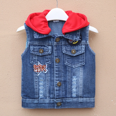 Quần áo trẻ em mùa xuân denim vest vest bé trai xuân và thu 2 áo 3 bé 4 phần mỏng 7 tuổi 5 áo vest vai thủy triều áo khoác em bé ấm áp Áo ghi lê