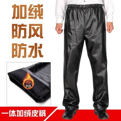 Quần da nam cộng với nhung dày đặt quần công sở rửa xe màu đen không thấm nước cộng với quần yếm nhung mặc quần bảo vệ - Quần da quần tây