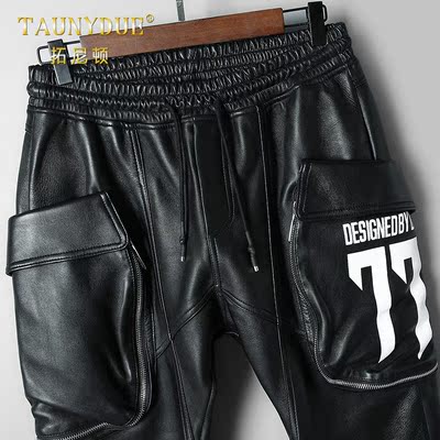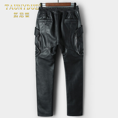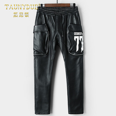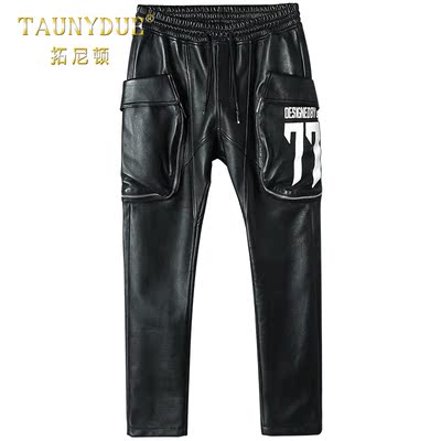 Quần da TAUNYDUE nam mới co giãn Slim xe máy nam cưỡi quần gió ấm da WJ0825 - Quần da quần da nam hàn quốc
