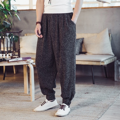 Quần nam phong cách Trung Quốc quần lanh quần tây nam mùa xuân và mùa hè kích thước lớn chất béo lỏng chân harem quần chân quần - Quần mỏng quần đùi nam Quần mỏng