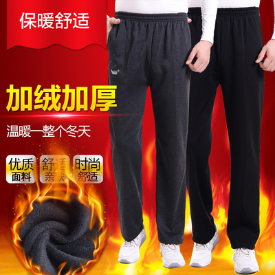 Quần thể thao nam mùa thu đông cộng với quần nhung nam trung niên giản dị trung niên và tuổi già lỏng lẻo eo thon quần dài quần thun thể thao nam