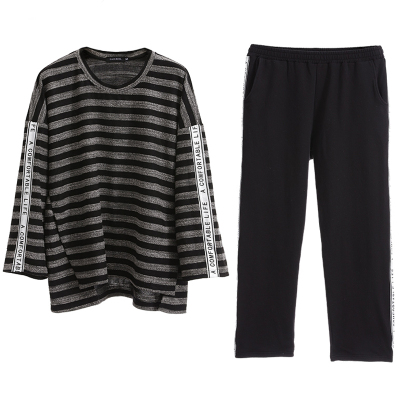 Roger thời trang nam sọc và nam đồ ngủ dài tay các cặp vợ chồng có thể mặc bên ngoài quần áo phù hợp với 18056HL đồ ngủ cộc tay cho nữ Giống cái
