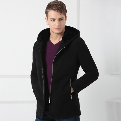Romeo rắn màu nam dây kéo quần nhung trùm đầu len bông dày trong chiếc áo khoác dài D3D007 áo măng tô dạ nam cao cấp