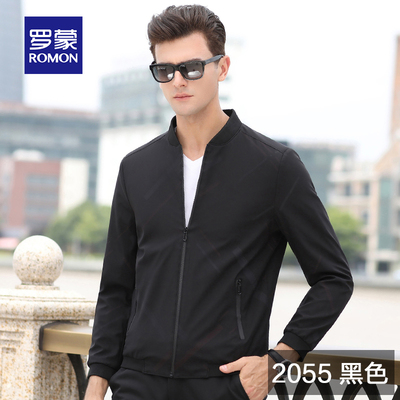 Romon Luo Meng áo khoác nam đứng cổ áo kinh doanh thời trang giản dị xu hướng cổ áo bóng chày Áo khoác mỏng mùa thu - Áo khoác đôi áo thun polo nam