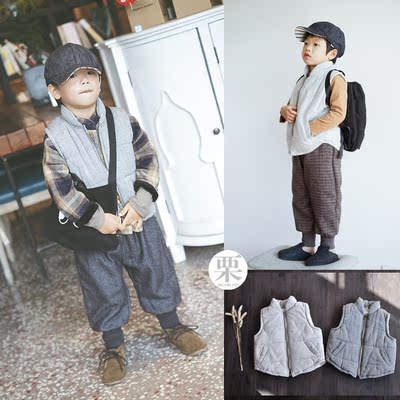 Sản phẩm dành cho trẻ em hạt dẻ 18 mùa thu và mùa đông Trường nhập học Hàn Quốc thoải mái cho bé trai và bé gái bằng vải bông và áo vest bằng vải lanh áo gile cho bé trai sơ sinh
