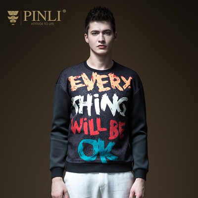 Sản phẩm PINLI 2019 xuân mới nam cổ tròn in áo thun giản dị áo len B191309101 - Áo len áo len nam cổ lọ Áo len