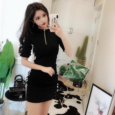 Sexy gió mát túi thon gọn hông váy nữ 2018 hè mới giản dị tối giản tay áo ngắn tay váy thủy triều váy voan