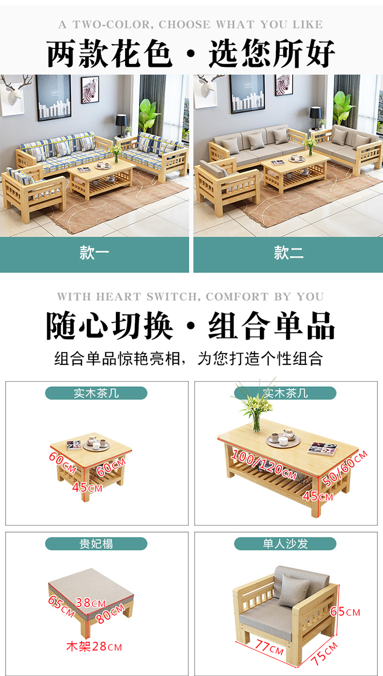 Tất cả rắn sofa gỗ kết hợp tối giản nhỏ phòng căn hộ sống sofa thông sofa gỗ kinh tế Trung Quốc mới hiện đại - Ghế sô pha sofa ngoài trời Ghế sô pha