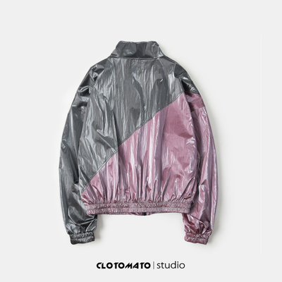 Thiết kế ban đầu nam mới tương phản màu sắc xu hướng sáng xu hướng cổ áo khoác hip hop retro lỏng nhảy đường phố áo khoác mỏng - Áo khoác đôi áo unisex
