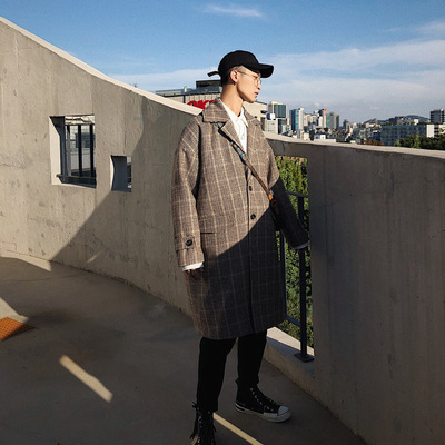 thời trang Hàn Quốc BANGBOY phần dài bf vàng mùa đông dày áo len nam áo khoác kẻ sọc quá khổ áo khoác jean nam