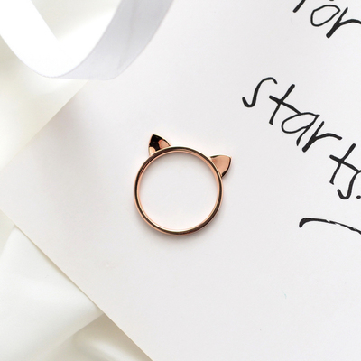 Thời trang Hàn Quốc titan thép màu vàng hồng vàng tai mèo con nhẫn nhẫn dễ thương nữ hipster ngọt ngào quà tặng phụ nữ - Nhẫn nhẫn vàng nữ 18k