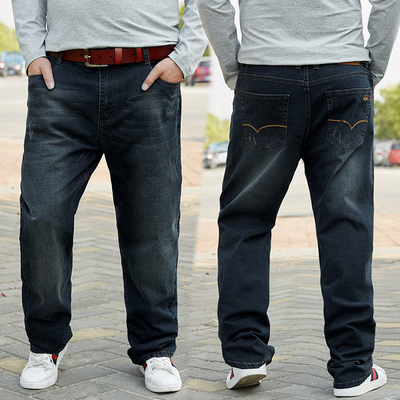 Thu đông mới co giãn cộng với phân bón quần jean cạp cao eo lửng nam rộng mút thẳng quần áo thể thao Cực lớn