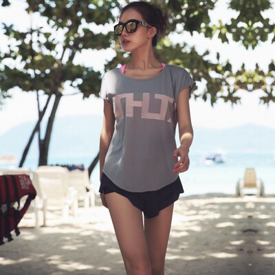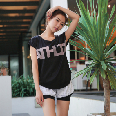Thư nhanh khô tay ngắn cổ tròn thể thao Áo thun nữ yoga mặc không tay chạy bộ tập thể dục áo thun mỏng áo thun thể thao nam có cổ